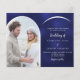 Un arrière - plan bleu marine, faire-part de mariage en arc photo. L'arrière - plan bleu est inégal. Texte blanc. Devant : Ajoutez votre propre photo de taille verticale. Personnalisez et ajoutez vos noms et détails. Retour : vous pouvez ajouter du texte si vous le souhaitez. Accédez à l'outil de conception et ajoutez-y le calque arrière. 1 feuille = 1 invite imprimé bord à bord.