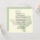 Faire-part de mariage unique pour les amoureux de l'état du Texas fait dans une teinte jaune, avec une carte légèrement bronzée et verte du Texas, dans l'arrière - plan. Personnalisez le texte noir pour votre journée spéciale. Produits correspondants disponibles.