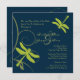 Invitation dispose d'un arrière - plan bleu nautique avec de belles fleurs et des libellules vert printemps entourant le texte entièrement personnalisable. Espace d'information RSVP disponible sur invitation donc pas besoin de RSVP supplémentaires! D'autres combinaisons de couleurs sont également disponibles dans ma boutique !