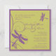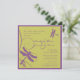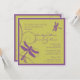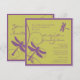 L'invitation présente des couleurs violettes et vertes avec de belles fleurs et des libellules violettes entourant un texte entièrement personnalisable. Zone d'information RSVP disponible sur le invitation, donc pas besoin d'autres RSVP!