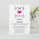 Faire-part de mariage de lunettes Geeky chic et décalées avec un coeur rose vif flanqué de deux paires de lunettes geeky, une paire de manies et une paire de ceintures représentant le marié et la mariée. Cette invitation décalée mais sophistiquée est parfaite pour votre mariage nerveux ! Facile à customiser, ajoutez simplement les détails de votre grand jour dans les champs de texte fournis. Cliquez sur le bouton "Customiser" pour trouver d'autres options de personnalisation.