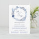 Ce joli faire-part de mariage est parfait pour les mariages d'été, mais il fonctionne aussi bien pour le printemps. Il dispose d'une belle couronne circulaire fleurie et feuille, avec un papillon! en haut, avec les initiales de mariée et de mariée au centre. Tous les éléments sont dans des tons bleu magnifique. Sous la couronne se trouve votre texte personnalisé dans les tons bleus correspondants. L'image et le texte sont placés sur un élégant arrière - plan blanc. Le dos de l'invitation est bleu correspondant.