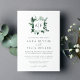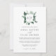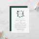 Notre faire-part de mariage de monogramme Wild Forest contient vos initiales, monogrammes ou duogrammes en haut, nichés dans une couronne carré de feuillage d'aquarelle d'hiver dans des tons hivernaux de forêt et de vert chasseur. Un regard moderne et élégant sur la tendance botanique pour les mariages d'hiver ou de printemps.