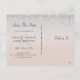 Simple, élégante, adorable carte postale de vacances de photo de Joyeux Noël avec date de réservation rose poudré avec des flocons de neige argentés.