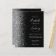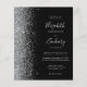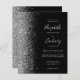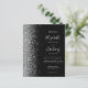 Le bord gauche de cette élégante faire-part de mariage moderne est orné d'une bordure en faux parties scintillant argenté. Le texte personnalisable combine écriture gris argenté pâle, copperplate et polices italiques sur un arrière - plan noir. L'envers présente un design noir et argent assorti.