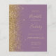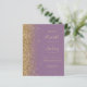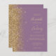 Le bord gauche de cette élégante faire-part de mariage moderne est orné d'une bordure de parties scintillant en faux or. Le texte personnalisable combine écriture manuscrite couleur or pâle, cuivre et polices italiques sur un arrière - plan mauve. L'envers est assorti d'un modèle mauve et or. REMARQUE : Les enveloppes ne sont pas automatiquement incluses dans ces invitations budgétaires, alors n'oubliez pas de choisir l'option "enveloppes blanches" !