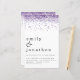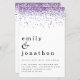 Faire-part de mariage de Parties scintillant Confetti violet. Une taille PLUS GRANDE de 5,5 po x 8,5 po à un prix abordable, sur un STOCK CARTE SEMI GLOSS 110 lb, idéal pour les invitations, à peu près la même épaisseur qu'une carte postale, ou un élégant stock LINEN 110 lb - pour un luxe, légèrement plus mince à un grand rapport qualité-prix. VEUILLEZ NOTER QUE LES ENVELOPPES OPTIONNELLES SONT UN PEU PLUS GRANDES EN TAILLE À 6,75" x 9" env. Cette alternative de taille budgétaire est également disponible dans d'autres choix de papier. Le papier FELT 100 lbs est de couleur bouffante, PAS blanc, donc ajoute une touche rustique. Le stock de papier MATTE 80lbs est blanc vif, pour une impression nette, idéal pour vos menus et programmes, tandis que le papier SATIN 80lbs est mince et léger, idéal pour les enceintes. Vos prénoms sont grands en minuscules élégantes avec les détails au dessous avec une bordure de parties scintillant violet en haut sur les deux côtés. Personnalisez facilement le texte.