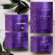 Le bord gauche de cette élégante faire-part de mariage moderne est orné d'une bordure en faux parties scintillant violet. Le texte personnalisable combine écriture manuscrite blanche, copperplate et polices italiques sur un arrière - plan en métal violet faux brossé. L'envers est assorti d'une parties scintillant et d'une conception en métal brossé.