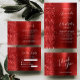Le bord gauche de cette élégante faire-part de mariage moderne présente une bordure en faux parties scintillant rouge. Le texte personnalisable combine écriture manuscrite blanche, copperplate et polices italiques sur un arrière - plan métallique en faux rouge brossé. L'envers est assorti d'une parties scintillant et d'une conception en métal brossé.