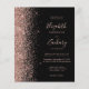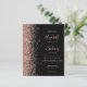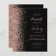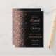 Le bord gauche de cette élégante faire-part de mariage moderne est orné d'une bordure rose en faux parties scintillant or. Le texte personnalisable combine écriture rose couleur or pâle, couleur blush, cuivre et polices italiques sur un arrière - plan noir. L'envers est assorti d'un design en or noir et rose. REMARQUE : Les enveloppes ne sont pas automatiquement incluses dans ces invitations budgétaires, alors n'oubliez pas de choisir l'option "enveloppes blanches" !