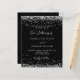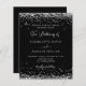 Un arrière - plan noir chic, décoré de parties scintillant faux argent, brille. Personnalisez et ajoutez vos noms et détails. 1 feuille = 1 invite imprimé bord à bord.