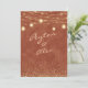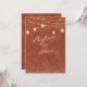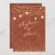 Faire-part de mariage recto-verso moderne, élégante et chic en terre cuite et or avec parties scintillant or et lampes à cordes. L'avant de la carte est personnalisée avec les noms de la mariée et du marié, et l'arrière a l'invitation pour vos invités.