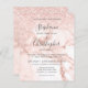 Un design chic et moderne avec une élégante arrière - plan en marbre décorée de faux parties scintillant dans les tons or rose, rose et blanc. Les noms de la mariée et du marié apparaissent dans le script gris charbon, avec le reste du texte dans la police sans serif. Le marbre et la parties scintillant se répètent à l'envers.