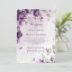 Elégante invitation de mariage avec des pivoines violettes profondes Cette faire-part de mariage exquise présente un superbe design floral avec des pivoines violettes profondes et des fleurs complémentaires, dressé contre un arrière - plan doux et pastel de lavande. Les teintes riches des pivoines et la verdure délicate créent un look sophistiqué et romantique. L'agencement floral encadre magnifiquement la zone de texte, ajoutant une touche élégante et enchanteresse. Parfait pour un mariage d'été, cette invitation dégage élégance et charme intemporels, ce qui en fait un choix idéal pour les couples qui souhaitent donner un ton raffiné et captivant à leur journée spéciale.