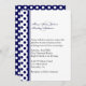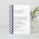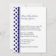 Invitation de mariage personnalisée et élégante faite en blanc, avec pois bleu marine et rayures, sur le côté gauche de la carte. L'arrière de l'invitation est bleu marine solide avec des pois blancs. Le texte noir et bleu marine est aligné sur le côté gauche et est entièrement personnalisable et prêt à être personnalisé pour votre journée spéciale.