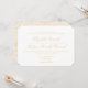 L'écriture traditionnelle est associée à une police simple et intemporelle, dans l'étiquette de cérémonie de l'église. Ce design présente un motif en dentelle blanche à l'arrière de l'invitation, avec un arrière - plan en or mat doux subtil. Sophistiqué, classique, intemporel et simple, parfait pour un mariage de cravates noir ou élégant.