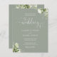 Cet élégant faire-part de mariage fleuri vert sauge budget budget peut être personnalisé avec vos détails de célébration définis dans la typographie chic. Conçu par Thisisnotme©