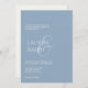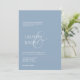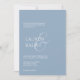 Minimaliste et chic. Ce faire-part de mariage élégant et simple dispose d'un joli ensemble de polices contemporaines et d'accent de script. L'avant de la carte est composé d'une combinaison de couleurs bleues poussiéreuses branchées. Les noms de couple sont répétés à l'arrière en bleu poussiéreux, contre un arrière - plan crème. La collection de mariages complets peut être consultée ici : https://www.zazzle.com/collections/modern_chic_script_wedding_collection-119480419775094242