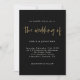 Faire-part de mariage de script noir or simple. Une élégante typographie set est en or pour le titre principal le Mariage De compléter le reste du texte que vous pouvez facilement personnaliser avec un arrière - plan noir classique sur le devant et de coordonner l'arrière - plan or sur le dos.