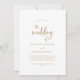 Ce faire-part de mariage en or rustique est parfait pour un mariage campagnard. Le design simple et moderne d'or et de blanc présente une calligraphie manuscrite unique et fantaisiste, avec un style boho minimaliste contemporain. Personnalisable dans n'importe quelle couleur. Gardez le design minimal et simpliste, en l'état, ou personnalisez-le en ajoutant vos propres graphiques et artwork.
