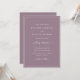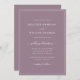 Faire-part de mariage de script violet. Faites de votre faire-part de mariage un moment inoubliable de votre journée spéciale grâce à ce design chic et élégant. Présentant un style simple et minimaliste avec une touche classique et élégante, cette invitation contemporaine en texte seulement présente un script de calligraphie à la main avec un cadre de bordure bleu et blanc poussiéreux classique.