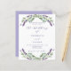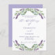 Un arrière - plan blanc décoré de fleurs de lavande et de verdure d'eucalyptus. Personnalisez et vos noms et détails. Retour : lavande, arrière - plan violet. 1 feuille = 1 invite imprimé bord à bord.