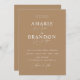 Ce Faire-part de mariage de tonalité terrestre moderne et minimaliste est l'écran parfait pour invitation vos invités à votre journée spéciale. Le design simple et minimaliste est à la hauteur de tous les couples. Cliquez pour customiser plus loin pour le placement de texte et le règne complet de la personnalisation des couleurs. Ceci est actuellement créé avec une tonalité terrestre et une palette de couleurs neutres.