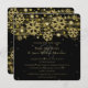 Moderne et élégant modèle de "Faire-part de mariage de vacances Or & Noir à sauvegarder", avec des flocons de neige et des lumières à paillettes dorées sur fond noir.