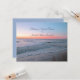 La collection de mariage de vue de plage comporte une belle scène calme et romantique de vue de plage. L'avant des caractéristiques de conception une photo de vue de plage des vagues calmes et romantiques roulant doucement sur le sable et l'herbe de la ligne de rivage au lever de soleil. La belle lueur du lever de soleil a moulé un choix de couleurs dans l'horizon et se refléter outre des ressacs. Pendant que vous regardez fixement dans les vagues de roulement vous pouvez presque sentir l'océan passer en coup de vent et goûter le sel dans le ciel. La photo a été prise au lever de soleil sur Hilton Head Island, la Caroline du Sud. Le postérieur de l'invitation est à l'origine conçu à une nuance bleue apaisante, mais peut être changé en n'importe quelle couleur en employant la "personnaliser il" caractéristique. Utilisez le modèle fait sur commande de mots pour personnaliser vos invitations avec vos propres mots. Cette conception est addition merveilleuse à tout extérieur ou échoue le mariage orienté.
