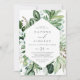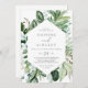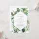 Ce faire-part de mariage décontracté de verdure boisée est parfait pour un été ou un mariage de automne. Le design boho moderne comprend des feuilles d'eau vert émeraude, sauge et olive luxuriants et des botaniques avec des sprigs de fleurs blanches élégantes.