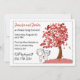 Jolie faire-part de mariage sur un thème décontracté, avec un garçon et une fille en bande dessinée debout sous un arbre à feuilles de coeur rouges, contre un arrière - plan blanc. Une couture noire autour du bord donne un look décontracté et amusant. Personnalisez le texte en fonction de vos besoins mariages.