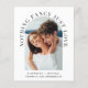 Faire-part de mariage décontracté moderne et économique avec votre photo dans un cadre voûté entouré par "Nothing Fancy Just Love" dans une typographie élégante. Ajoutez vos prénoms, votre date mariage et votre emplacement. Au contraire, personnalisez votre invitation en typographie simple.