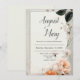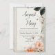 Célébrez l'amour avec une grâce intemporelle en utilisant ce Faire-part de mariage d'élégance Blush Bloom. Doté d'un arrière - plan blanc cassé et propre, encadré dans une texture de marbre doux, le design est orné d'illustrations florales de style aquarelle dans des tons chauds pêche, rougis et ivoire. Des feuilles verts riches et des fleurs blanches délicates ajoutent une atmosphère de jardin romantique sans accabler la disposition minimaliste, permettant à votre texte de briller au centre. Cette élégante invitation est parfaite pour les mariages du printemps et de l'été, les fêtes de fiançailles, les douches nuptiales ou encore les renouvellements de voeux. Son look polyvalent et raffiné s'inscrit parfaitement dans les thèmes mariages classiques et contemporains. La composition équilibrée offre suffisamment d'espace pour une formulation personnalisée, ce qui facilite la personnalisation de votre journée spéciale. Que vous planifiez une cérémonie de jardin fleuri ou une fête intérieure chic, ce design apporte une touche douce et romantique à votre suite de papeterie mariage.