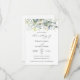 Cette conception présente une aquarelle illustrant le feuillage verdoyant et les feuilles d'eucalyptus avec des confettis verts et dorés sur le dessus.