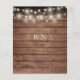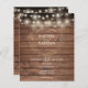 Avec de jolies lampes à cordes, vos noms sont encadrés dans une guirlande de laurier au-dessus de votre date mariage et des détails du lieu, mis en typographie classique chic et élégante sur un arrière - plan en bois rustique sur ce faire-part de mariage économique élégant. Le verso a vos initiales ou monogramme encadrés par une guirlande de laurier fleuri assortie. Conçu par Thisisnotme©