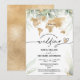 Vous organisez votre mariage dans une destination romantique ? Invitez vos invités avec ce magnifique faire-part comportant une carte du monde dorée sur fond floral et votre destination personnalisée marquée d'un cœur amovible.