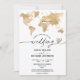 Vous organisez votre mariage dans une destination romantique ? Invitez vos invités avec ce magnifique faire-part avec une carte du monde en or et votre destination personnalisée marquée avec le cœur mobile.