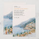 Invitez vos invités à célébrer votre amour avec ce design élégant de mariage sur la côte d'Amalfi. Avec une illustration aquarelle douce d'une table de réception au bord de la mer et d'un village sur une colline, cette invitation capture la romance d'une célébration côtière italienne.