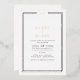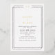 Un faire-part de mariage noir blanc et doré raffiné de la suite Avery, avec une fine bordure à double ligne, et une typographie sans serif propre. Idéal pour les mariages modernes et minimalistes. Les initiales et les noms du couple sont faites dans une feuille d'or pressée luxueuse.