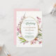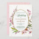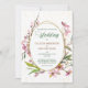 Un cadre double en or ovale est décoré de jolies perruques en fleurs de cerisier d'aquarelle sur cette faire-part de mariage. Votre texte personnalisé est en vert et or correspondant au centre. L'arrière - plan a un spray de confetti en or brillant. Les images et le texte sont placés sur un élégant arrière - plan blanc. L'arrière de l'invitation est assorti au rose clair, avec la même superposition de confettis. Belle, moderne et chic !