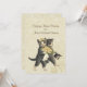 Adorable invitation mariage damassé florale personnalisable. Sweet vintage marié chat tient un bouquet de mariage rose blanc et le chat Groom se mèche à côté d'elle avec son chapeau noir. Arrière - plan blanc ivoire floral damassé. Customisez à l'avant et à l'arrière de cette invitation avec vos noms et informations de mariage.