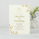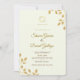 "Faire-part de mariage minimaliste avec des accents de feuilles d'or élégants et une mise en page raffinée. Avec des anneaux entrelacés en haut et une typographie moderne, ce design allie sophistication et charme intemporel. Parfait pour les couples qui cherchent une façon élégante et stylée d'annoncer leur jour spécial."