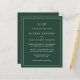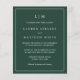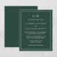 Faire-part de mariage économique simple avec un design moderne et élégant avec votre monogramme à deux lettres en haut et vos détails entourés d'une fine bordure. Tout le texte est en blanc sur un arrière - plan vert de forêt. Les polices et les couleurs arrière - plans peuvent être changées en n'importe quelle couleur en cliquant sur le bouton "personnaliser". Ces invitations de mariage bon marché sont parfaites pour un couple minimaliste.