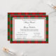 Faire-part de mariage sur le thème du Mariage écossais sur mesure utilisant l'un des tartans pour le nom de famille Chisholm. Les informations de Faire-part de mariage personnalisables sont encadrées au centre d'une invitation rectangulaire stylisée. Idéal pour les mariages à destination, les mariages du patrimoine familial ou les mariages écossais. Si vous souhaitez qu'un autre tartan ne soit pas montré ici, n'hésitez pas à m'envoyer un message. Veuillez fournir le numéro de référence STA pour le motif tartan que vous souhaitez, si possible.