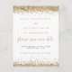 Faire-Part de Mariage Écriture avec Bordure de Paillettes Dorées. Une carte postale pratique pour inviter vos invités à réserver votre date. Paillettes dorées fausses en haut et en bas et une écriture informelle pour Sauvegarder notre date. Personnalisez facilement le reste du texte avec vos détails.