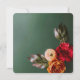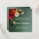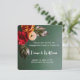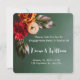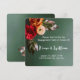 Cette élégante invitation de mariage carrée présente une belle composition de fleurs et de feuilles automnales sur un fond vert foncé. Les couleurs vives de bordeaux, de pêche et de vert créent une atmosphère chaleureuse et accueillante, parfaite pour un mariage d'automne. Le design minimaliste permet à la composition florale de prendre le devant de la scène, tandis que le texte personnalisable assure une touche personnelle.