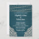 Ajoutez une touche de charme bohème à vos invitations de mariage avec cette invitation de mariage Rustique Élégance Sombre et Teintée de Fantaisie. Le fond en bois de couleur sarcelle foncée prépare le terrain pour une célébration magique, ornée de guirlandes lumineuses qui créent une atmosphère romantique. Des motifs délicats de dentelle florale blanche encadrent les coins de l'invitation, ajoutant une touche élégante et féminine. La combinaison d'une police de caractères script vintage et d'une police serif lisible en blanc crée un beau contraste sur le fond sombre, garantissant que tous les détails soient facilement lisibles. Cette invitation est parfaite pour les couples qui recherchent un thème de mariage unique et enchanteur. Définissez le ton de votre journée spéciale avec nos invitations de mariage Rustique Élégance qui laisseront une impression durable sur vos invités.