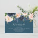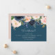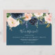 Ces cartes de faire-part de mariage élégant avec fleurs roses et bleues présentent un beau design floral. Le design classique et élégant comporte des fleurs modernes à l'aquarelle bleu marine et rose saumon sur un fond bleu sarcelle. Personnalisez la carte avec les détails de votre mariage et utilisez la section modèle au dos pour les informations de réception, pour annoncer un changement d'adresse ou pour tout autre détail que vous souhaitez partager.