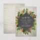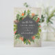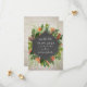 Une invitation élégante de réponse de mariage avec un design géométrique inspiré d'un tableau noir entouré de verdure tropicale sur un fond de brique blanche.