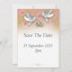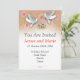 Faire-part de mariage élégant avec colombes et anneaux blancs. nom, heures, dates et lieu entièrement personnalisables selon vos besoins